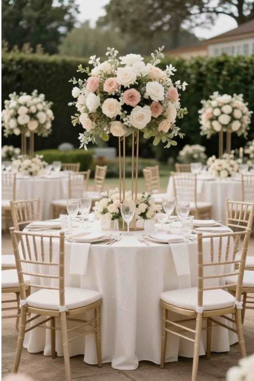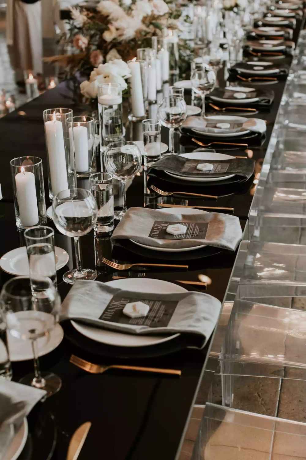 Match it with crystal glassware and layered plates and it looks like a sophisticated dinner party rather than a generic banquet.