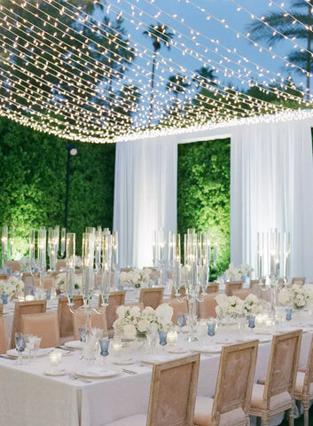 This works especially well for evening receptions, outdoor tents or courtyard spaces where you want a dreamy and starlit vibe.
