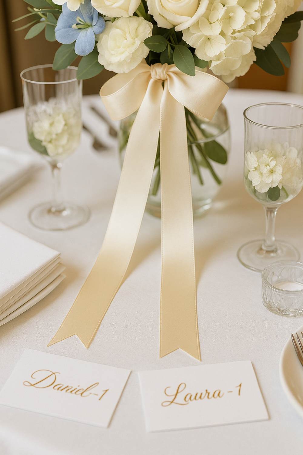 Even switching just the water goblets or wine glasses to something more decorative can make the whole setup feel more luxurious without a huge extra cost.
