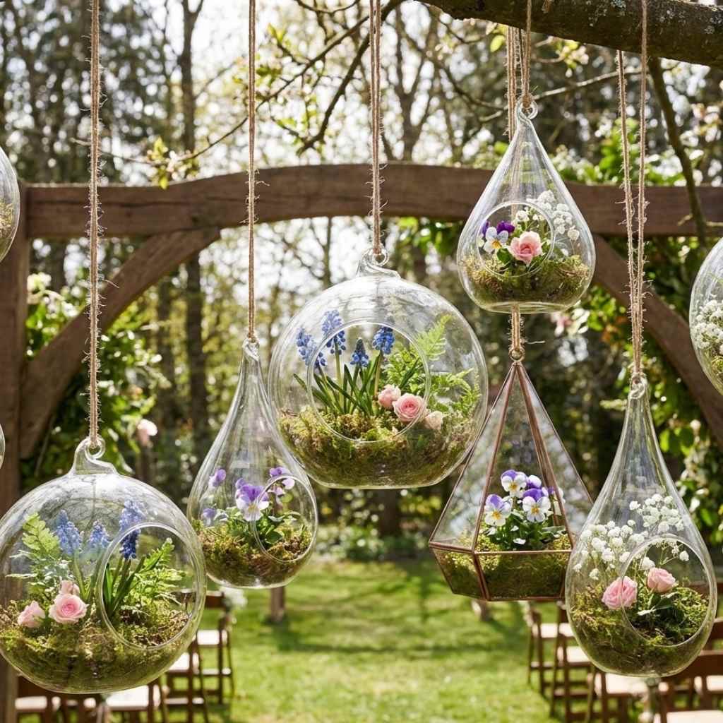 Hanging Glass Terrariums With Flowers