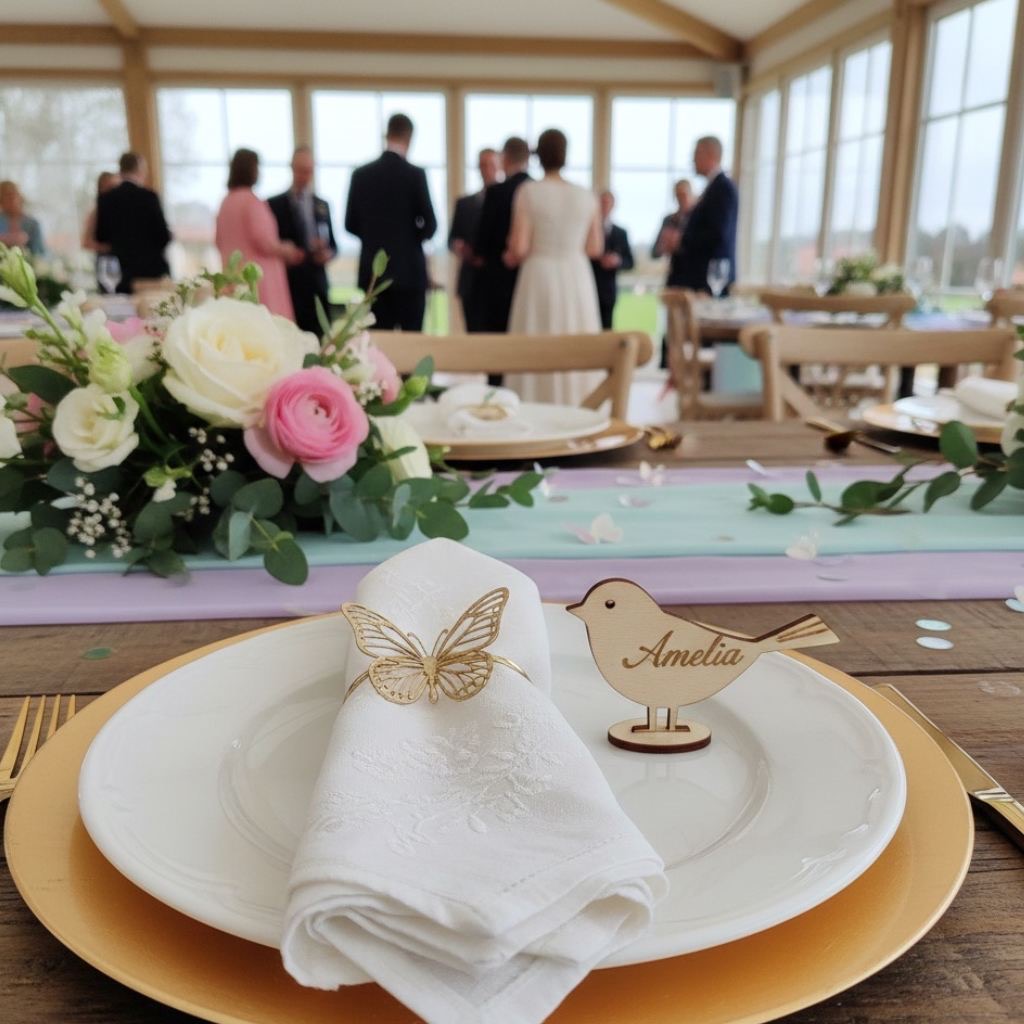 Spring is all about nature waking up so try using butterfly or bird motifs subtly. It could be on your napkin rings, as place card holders or even small decorative bits and pieces scattered on the tables. Just don’t go overboard – keep it subtle.
