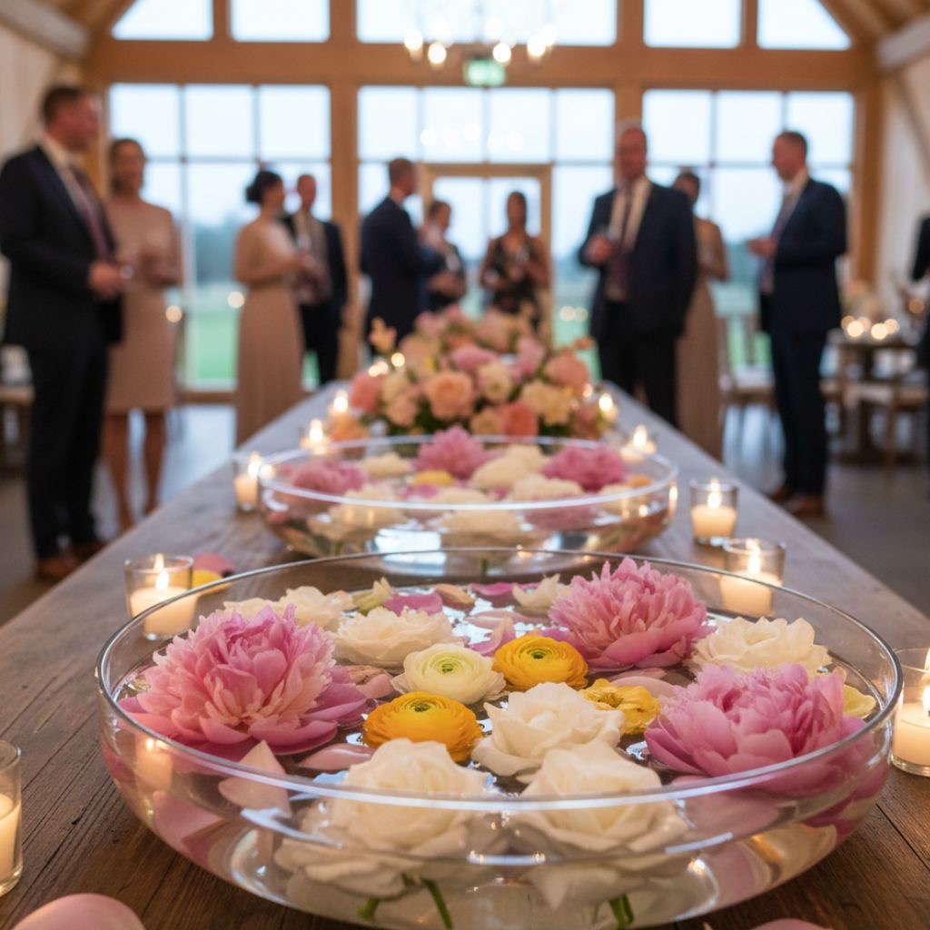 Floating Flowers in Glass Bowls