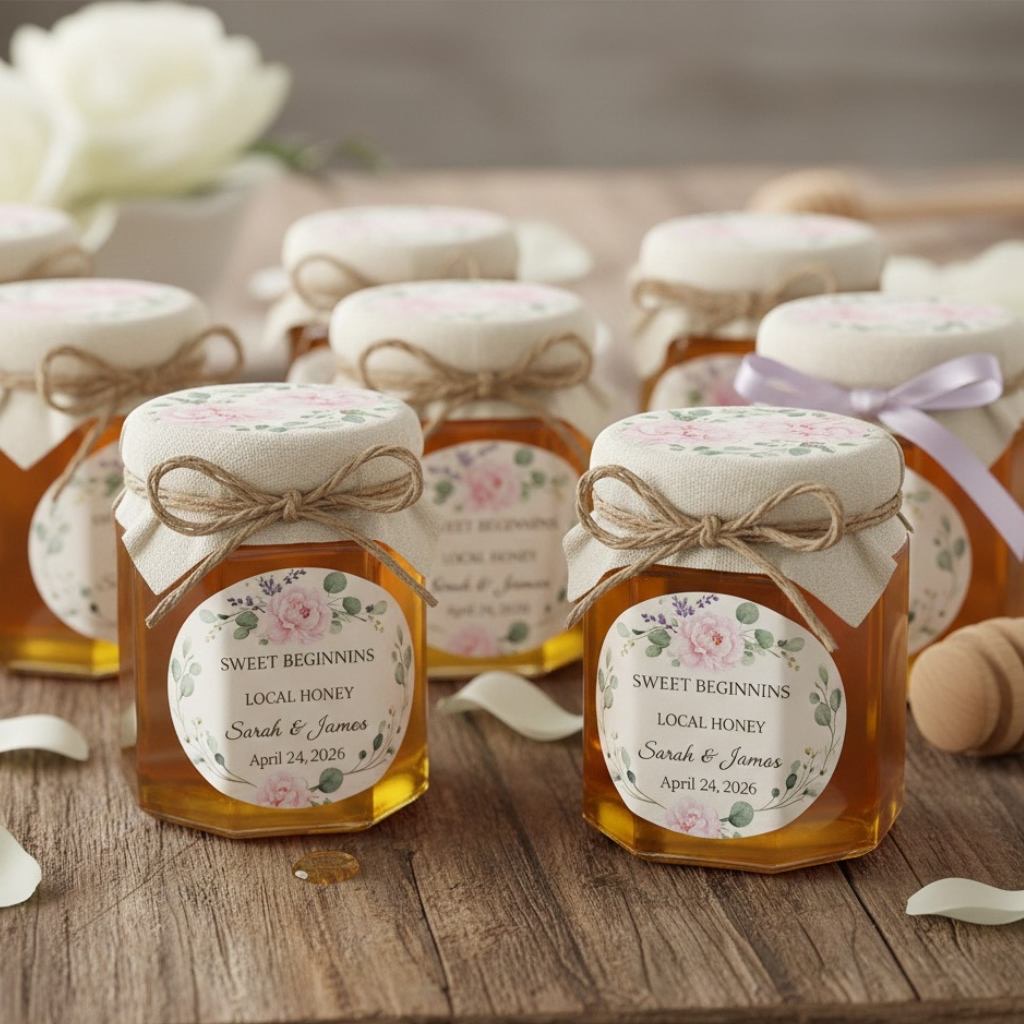 Honey Jars With Floral Labels
