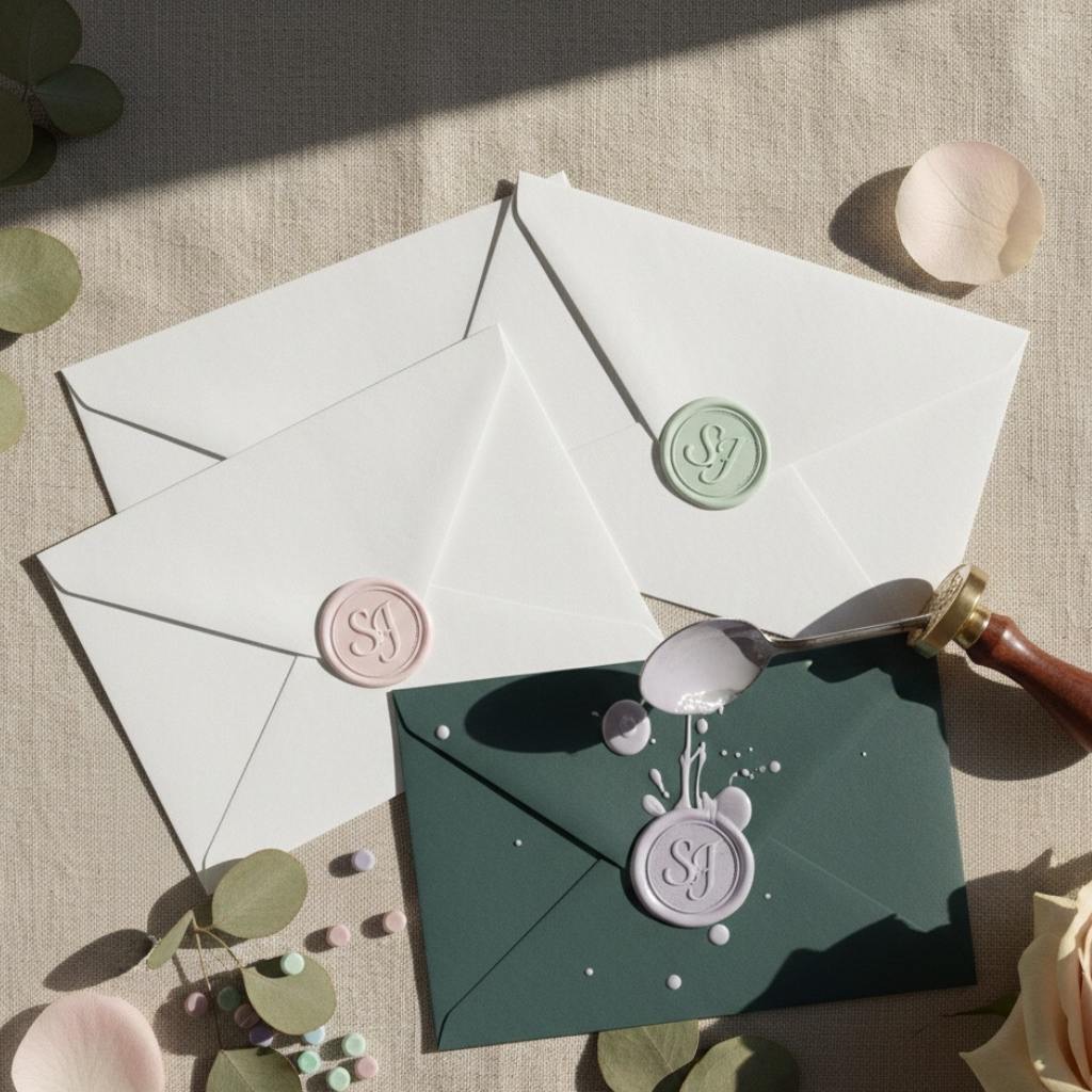 Seal your invitation envelopes with colored wax seals in pastel pink, lavender or mint. It’s a small detail but feels special and vintage. You can buy wax seal kits on Amazon for under $30 and do them yourself.