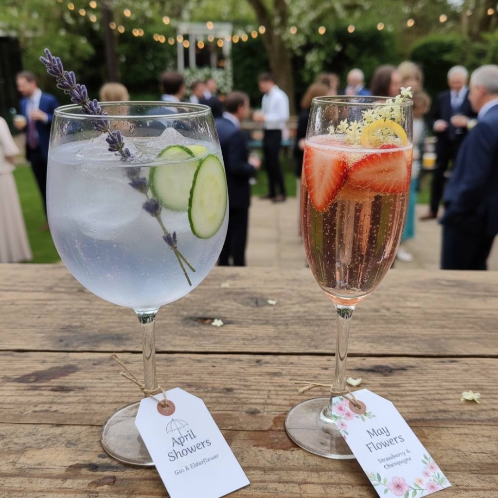 Create signature cocktails with spring ingredients – elderflower, lavender, strawberry or cucumber. Give them cute spring themed names. I remember a friend did an “April Showers” gin cocktail and a “May Flowers” champagne cocktail. The guests absolutely loved them.