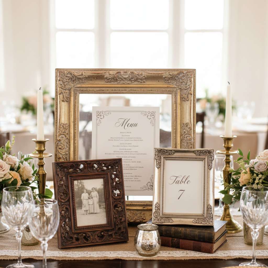 Use ornate frames to display table numbers, menus or family photos. The designs – gold leaf, carved wood, aged metal – are going to make the venue look even more elegant.