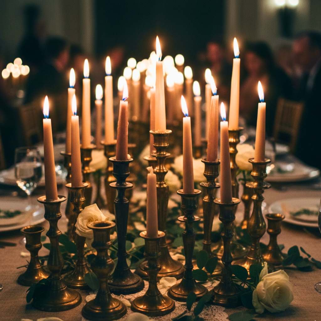 Combine long tables, taper candles, muted florals, aged metals and textured fabrics. It creates a romantic dining atmosphere reminiscent of old European gatherings.