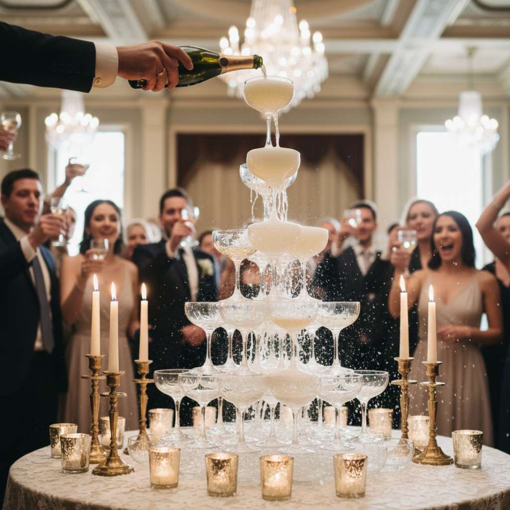 A champagne tower is one of the most iconic and well known pieces for vintage glamor. Pouring into the top glass while it cascades down is going to be the show stopper of your reception and what many of your guests will be talking about once the evening is over.