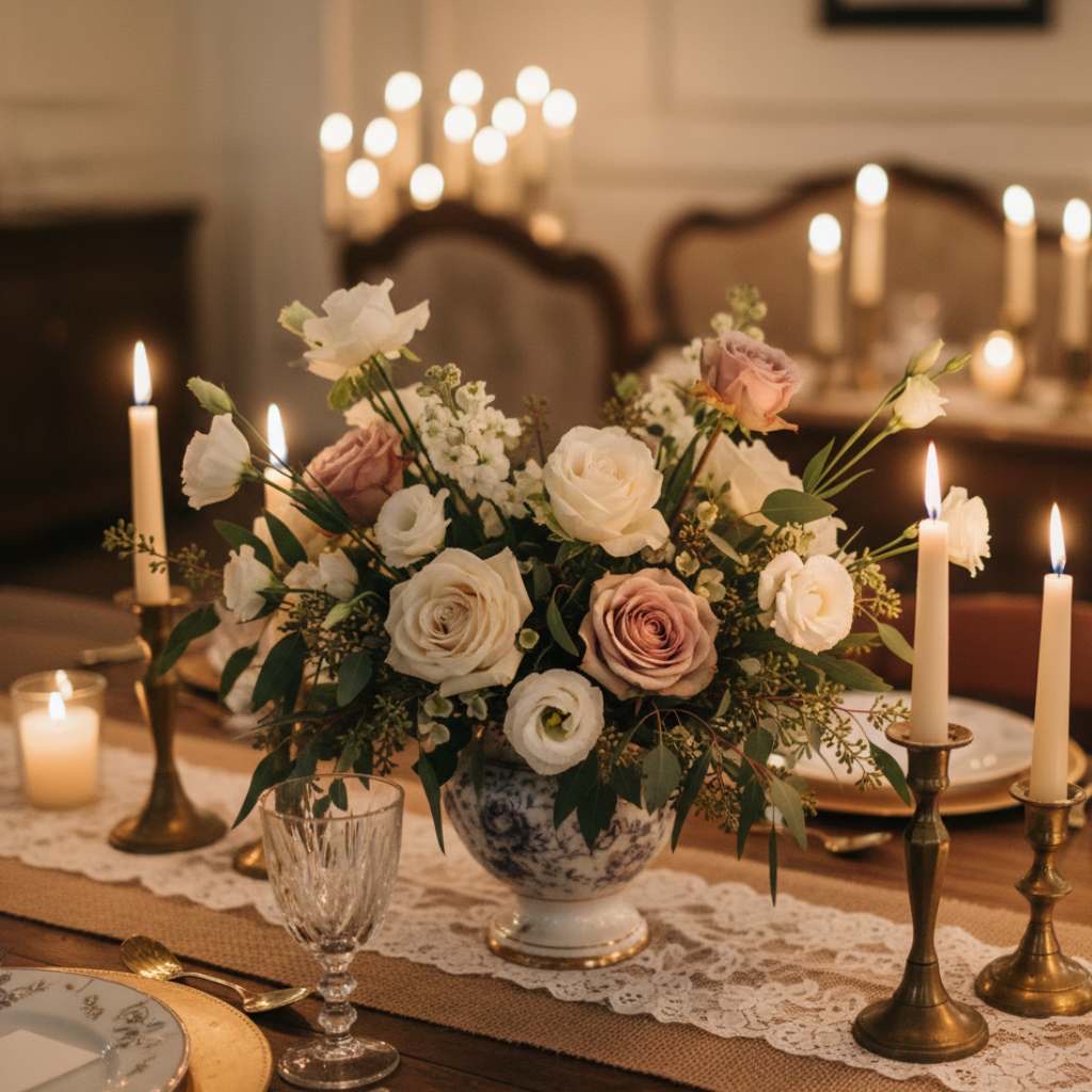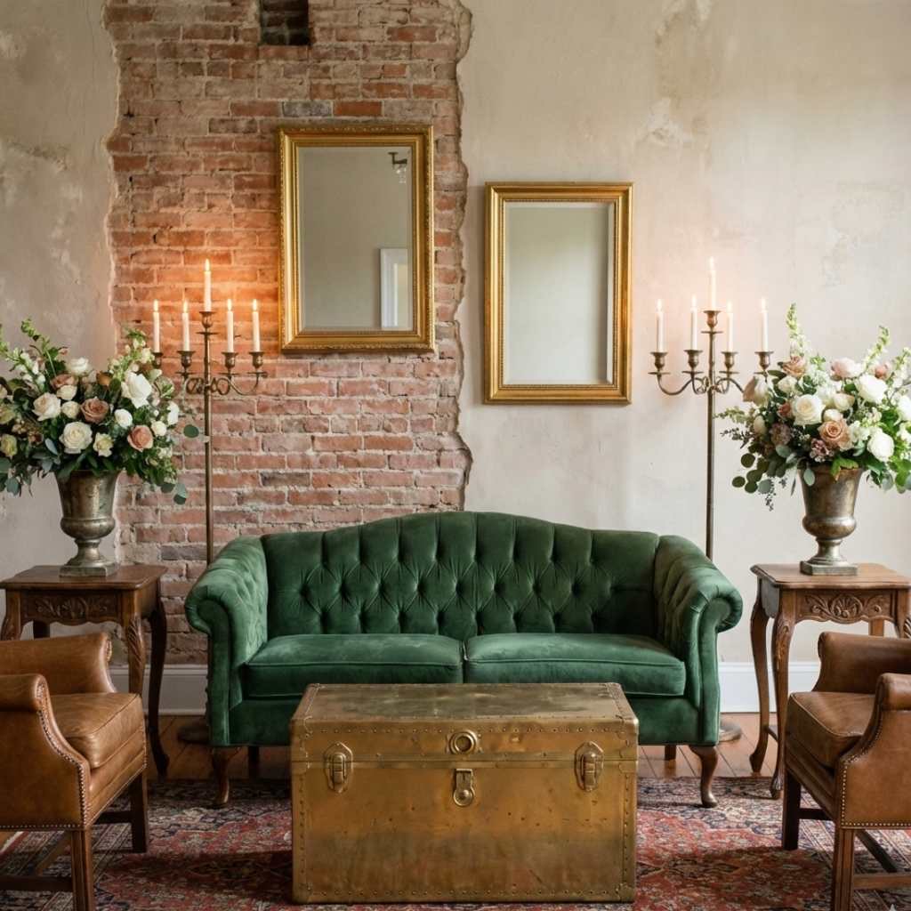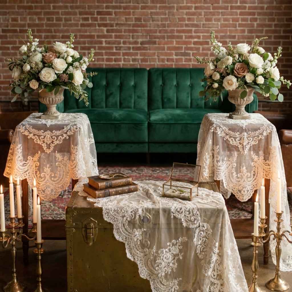 - Vintage: Soft, romantic elements that feel timeless – lace, brass candlesticks, antique mirrors, old books, and layered fabrics.