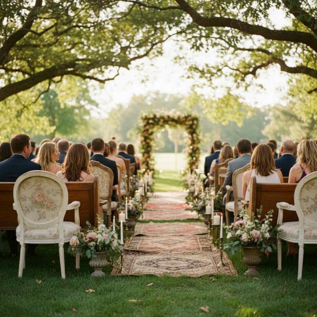 Layering vintage rugs down your aisle displays some personality of yours and makes the whole thing feel more warm. You can go for muted patterns or bold Persian styles but whichever you choose the layered look feels intimate and is great for both indoor and outdoor ceremonies.