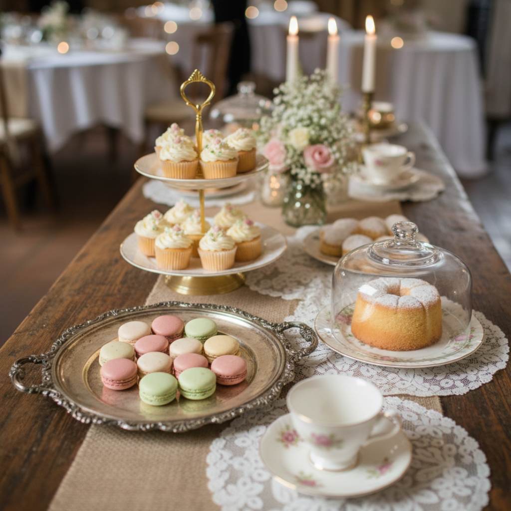 Use antique trays, tiered cake stands, glass domes or lace doilies to display your desserts. Even simple pastries look classy and nostalgic when styled with vintage serving pieces.